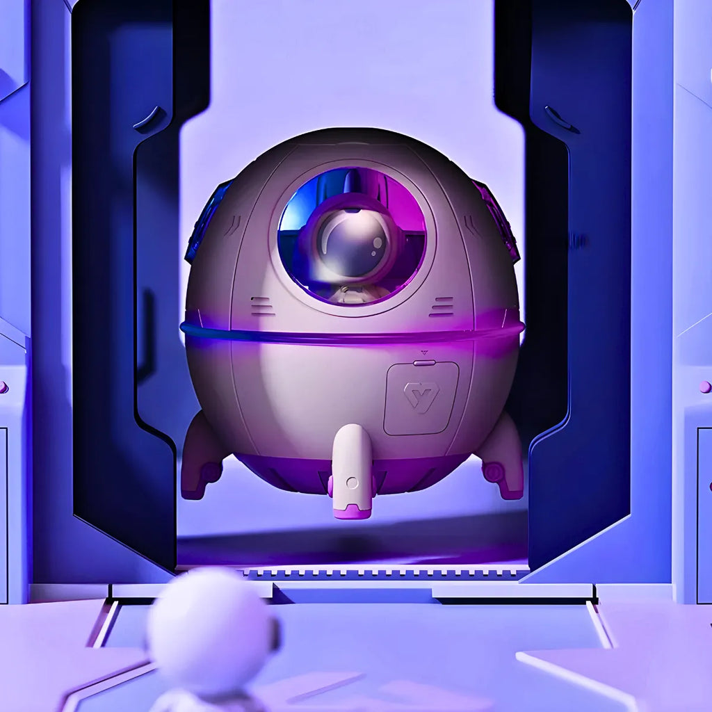 Transforme qualquer ambiente com este umidificador portátil inspirado em cápsulas espaciais. Perfeito para adicionar umidade e estilo a quartos, escritórios, mesas de trabalho ou até mesmo viagens de carro.